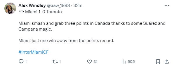 Lastly, Inter Miami is just one win away from setting the MLS all-time regular season record.